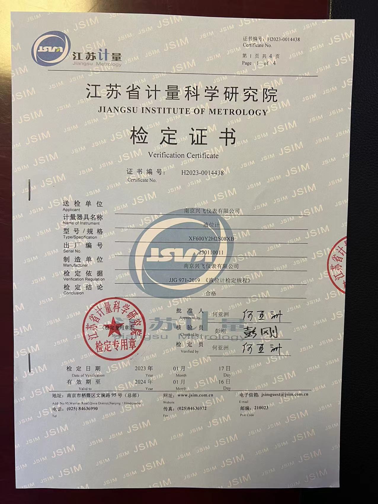 液位計(jì)檢定證書(shū)